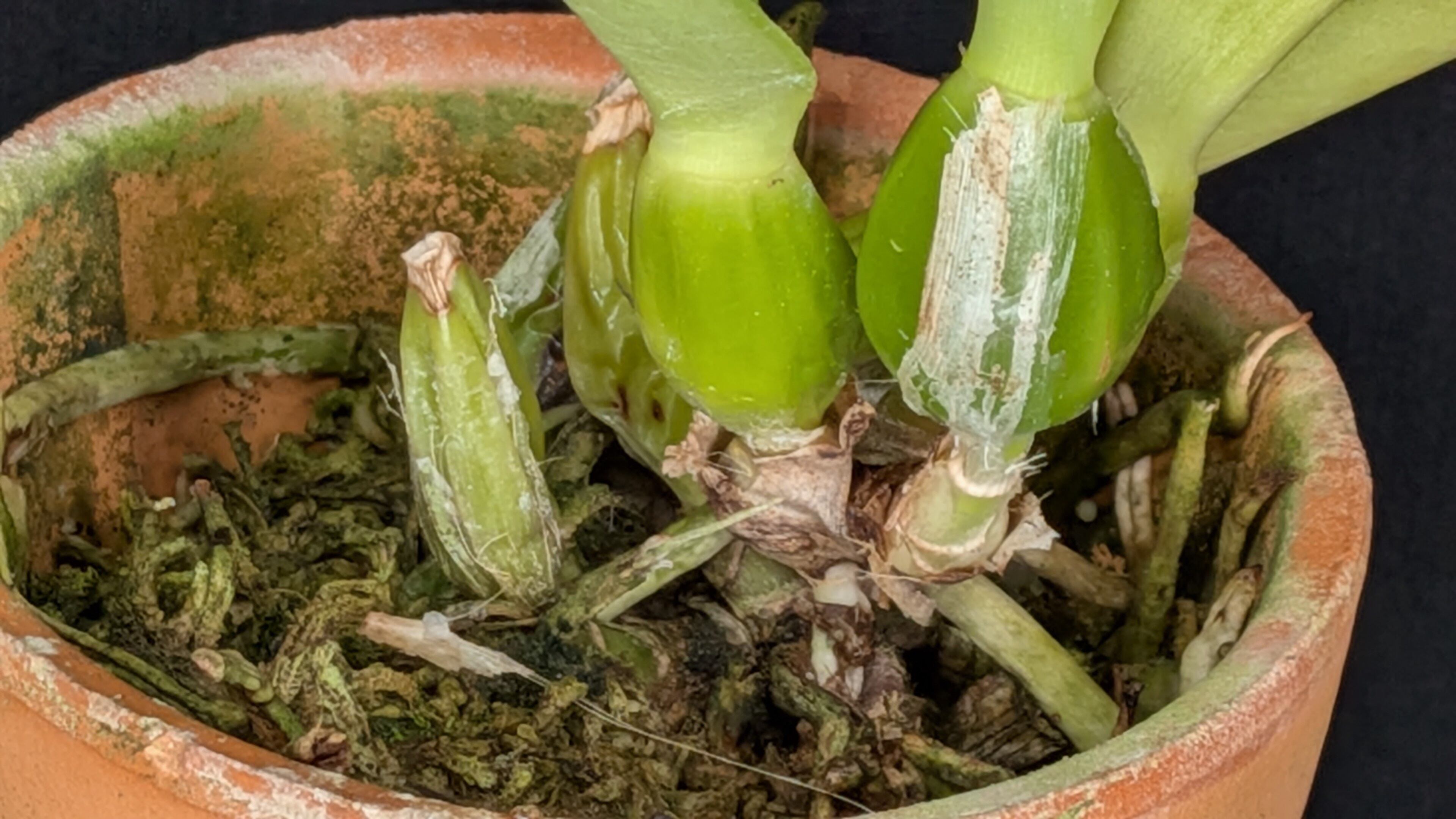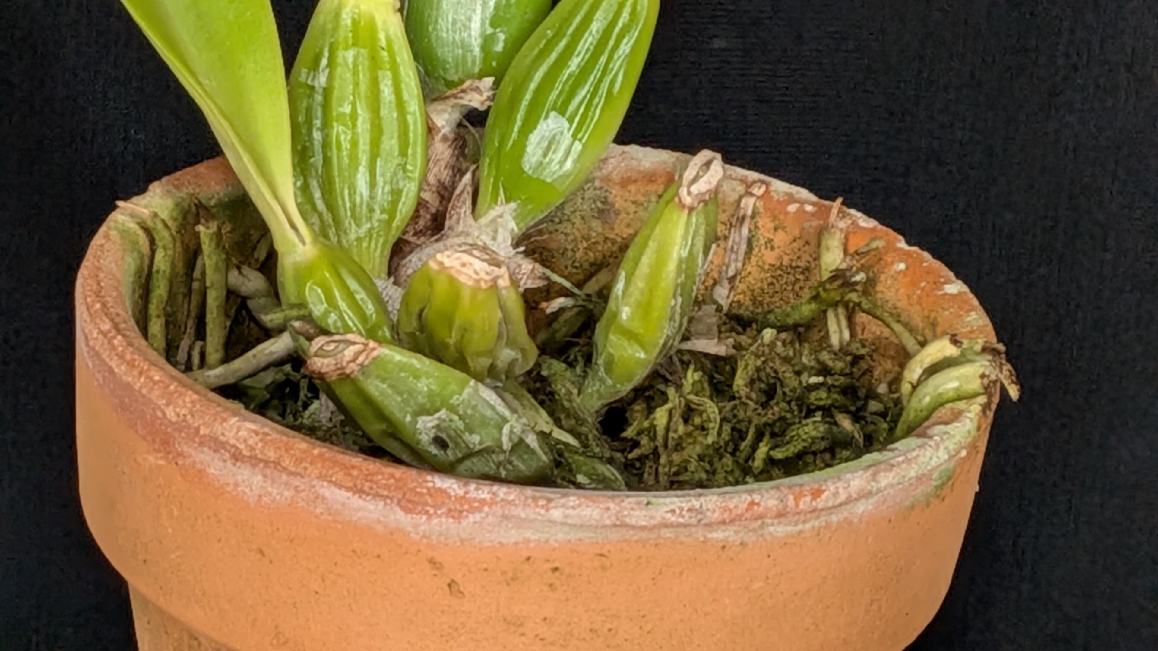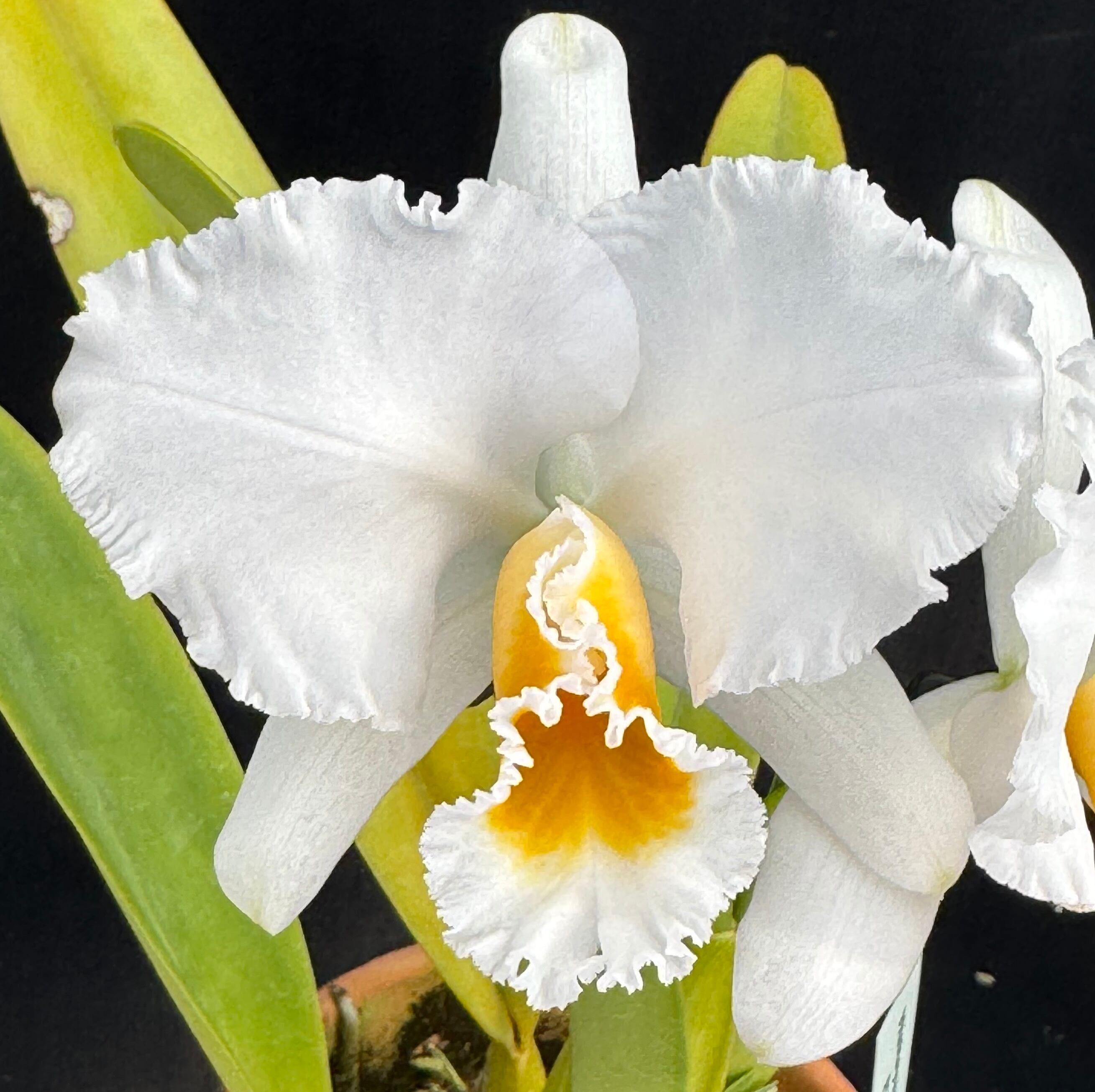 ブラジル実生のパーシバリアナです。当園で兄弟株が1株開花しましたがペタルがオーバーラップする非常に良い花が咲いています。リップの目もパーシ特有の黄金色で非常に美しいです。