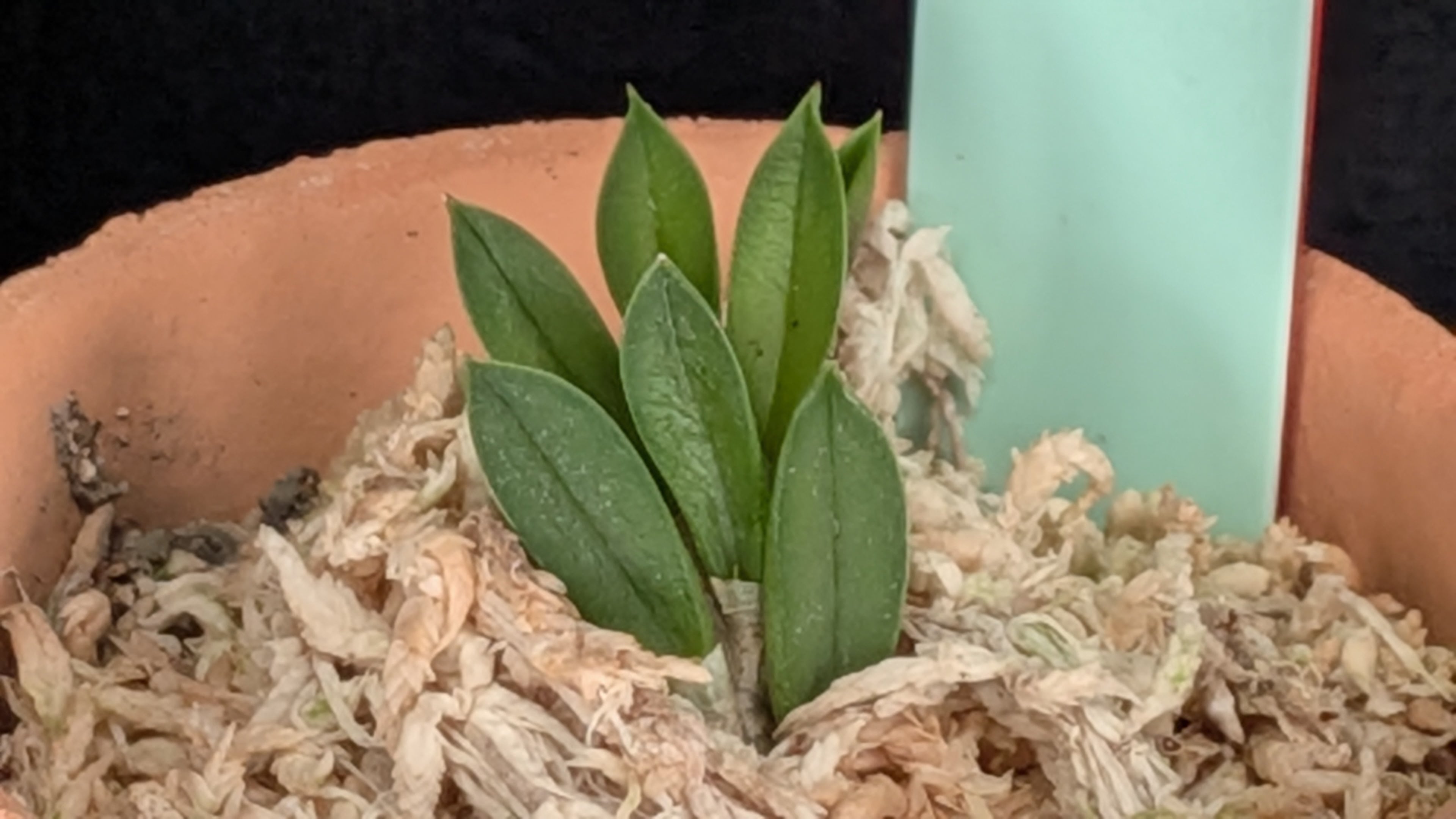 花も葉も極めて一風変わった超小型プレウロです。このサイズ感でそろそろ開花可能です。